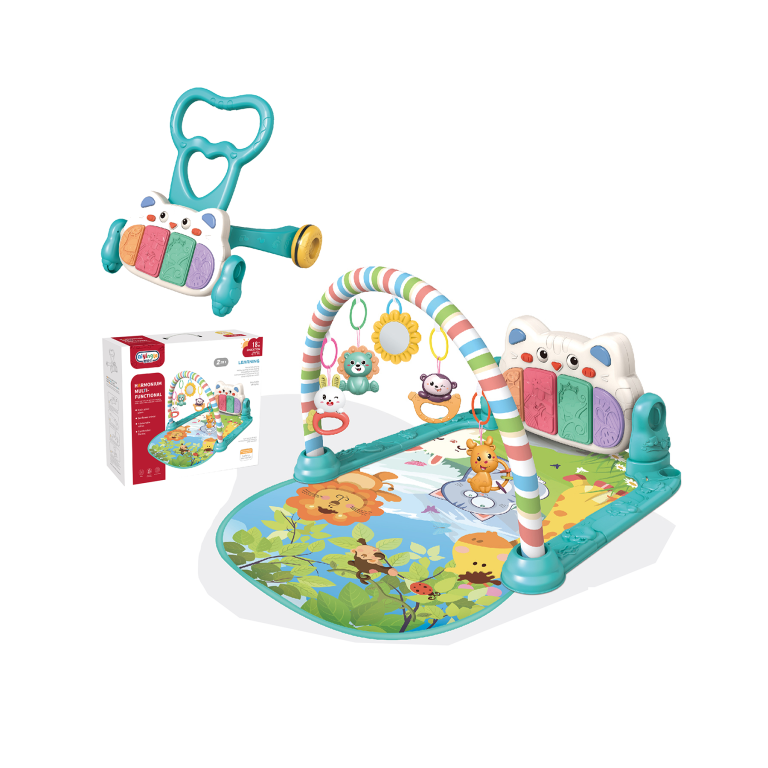 فراش بيانو 2*1 مع اصوات و موسيقى مختلفة يمكن العزف عليها و ممارسة الرياضة مع العاب معلقةيمكن تحويلها الي ان تكون دراجة تعلم مشي
