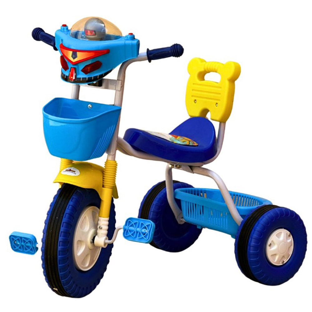 دراجة أولاد روعة بلون أزرق مع أصفر تجذب كل طفل! تصميمها كرتوني وفيها خوذة روبوت عالشكل تعطيها طابع مغامرات. فيها سلة قدام للعب أو الأغراض، وقعدة مريحة مع مسند ظهر على شكل دب. العجل الخلفي ثابت علشان التوازن، والدواسات خفيفة على الطفل.