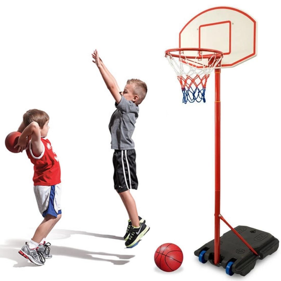 ستاند سلة مصنوع من الحديد المقوي الامن على الاطفال مع شبك سلة و كرة ومنفاخ يمكن التحكم في الارتفاع يمكن ملئ الاستاند بالماء او الرمل لصعوبة تحركه