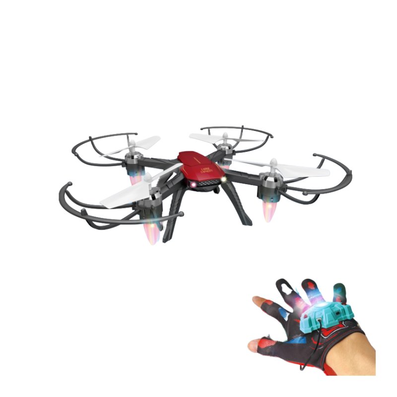 طائرة التحكم باليد مع قفاز تحك عن بعدشكل جديد و مميز من طائرة الدرون متوفر الوان مختلفة امكانية الدوران ٣٦٠ درجة تحكم كامل باليد عن طريق القفازات