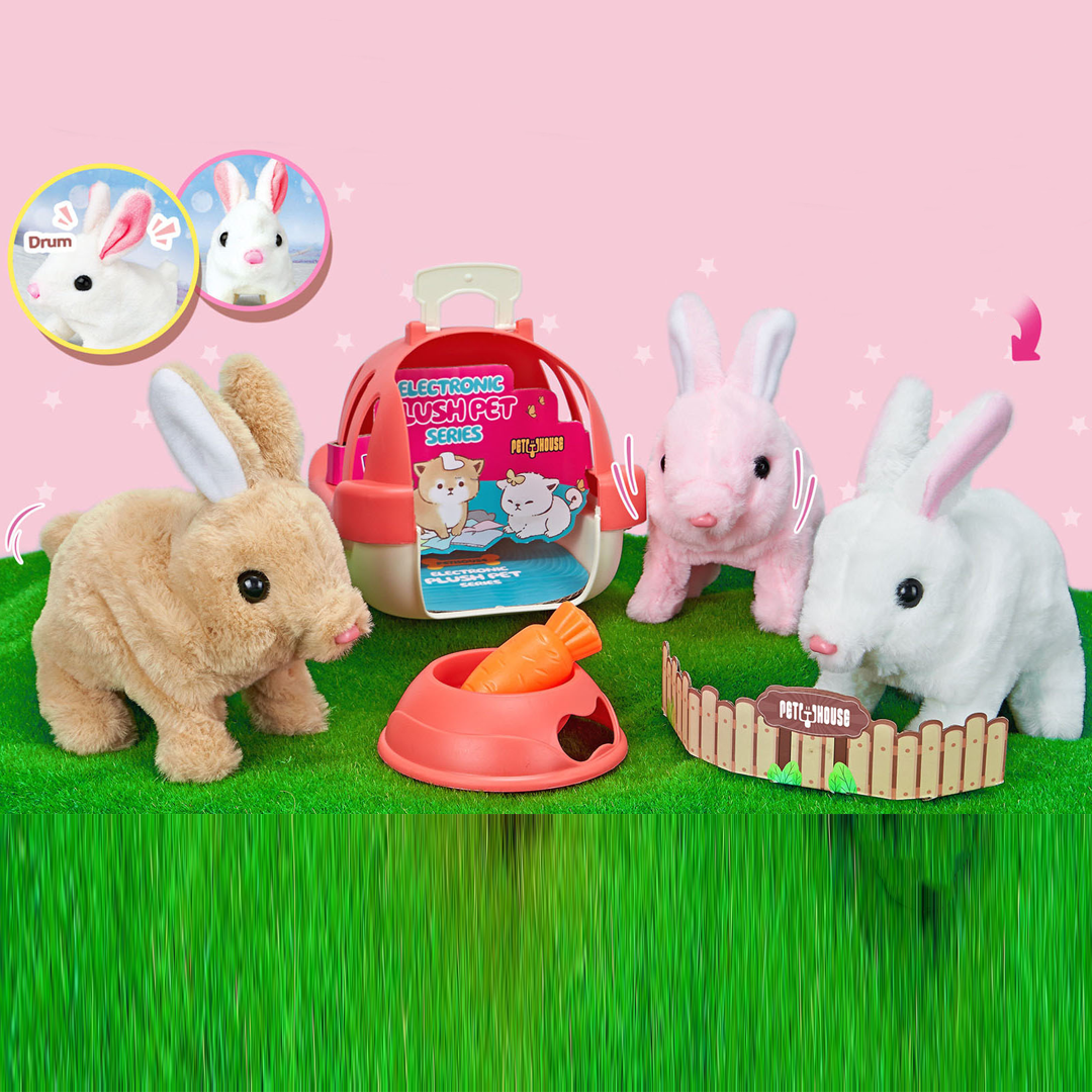 مجموعة الارنبPLUSH PETارنب فرو ناعم مع أدوات صحن - جزر و بوكس سهل التنقلفرشاة مرآةمتوفر الوان من الارنب ( وردي - ابيض - بني )