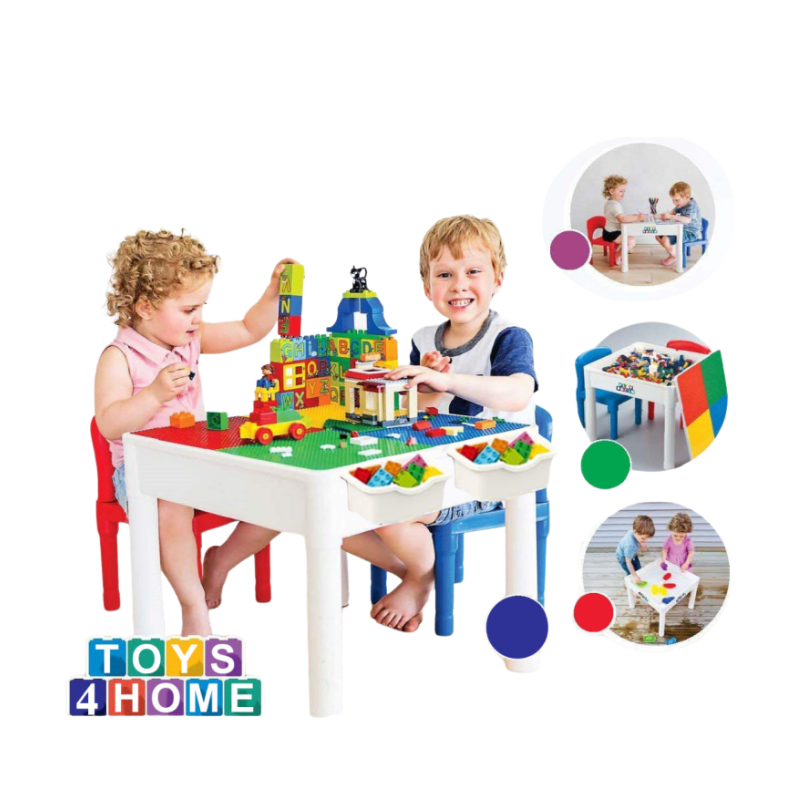 طاولة متعددة الوظائف متوافقة مع بطاقات ليغو دوبلو. يتضمن طاولة وكرسيين و أدراج مساعدة.