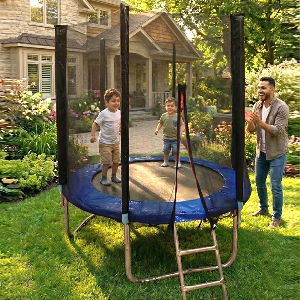 قدرة تحميل قوية . بالإضافة إلى الهيكل الصلب ، فإن السعة الكبيرة تجعلك تشعر بمزيد من الأمان وتسمح للعديد من الأشخاص باللعب والقفز على الترامبولين معًا.
