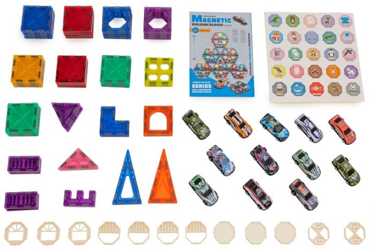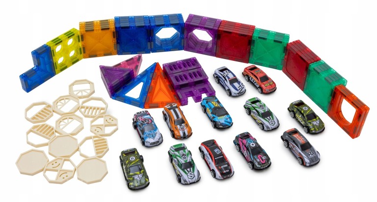 تركيبات 108 قطعة مع سياراتعدد 18 سيارةمع تركيبات مغناطيس قويةالوان مختلفة ورائعة