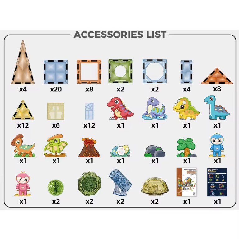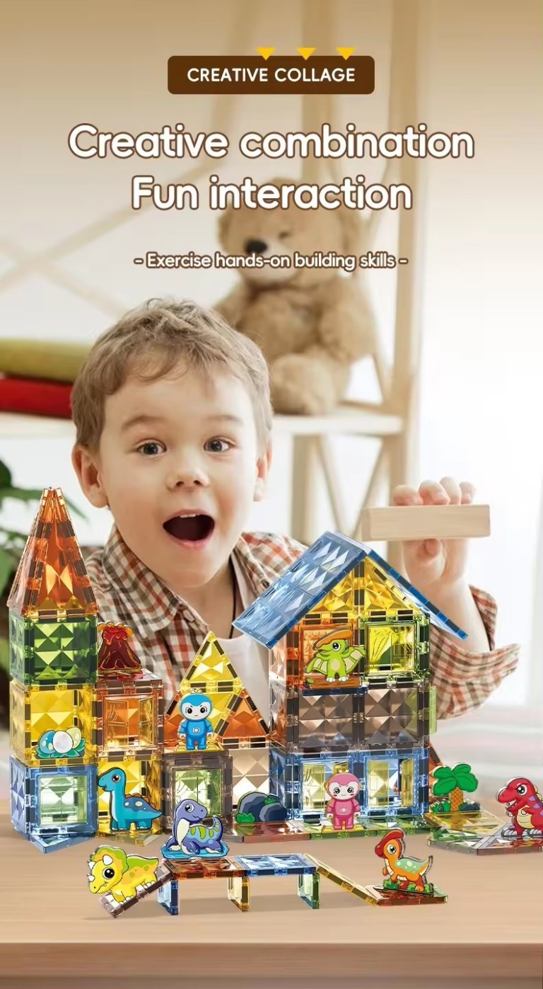 عدد 98 قطعة تركيبات مغناطيسية مربعة للأطفال تركيبات مغناطيسية تعليمية مجموعة مكعبات بناء الحيوانات لعبة مغناطيسية ذاتية الصنع للأطفال