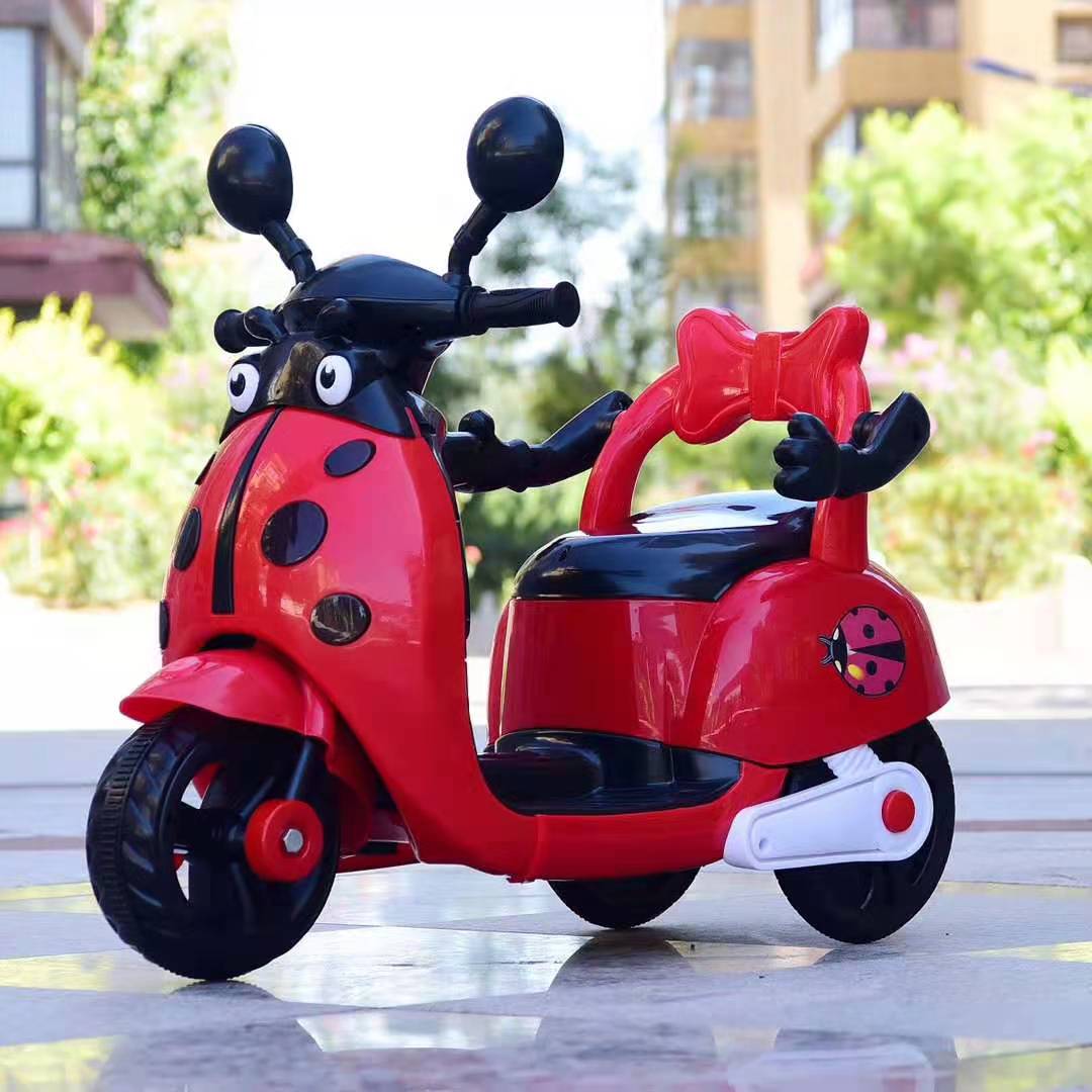 سيكل الدعسوقةاضاءة و موسيقى ثلاث تواير كرسي مريح و امن على الأطفال دواسة امامي + خلفيمسند للظهر