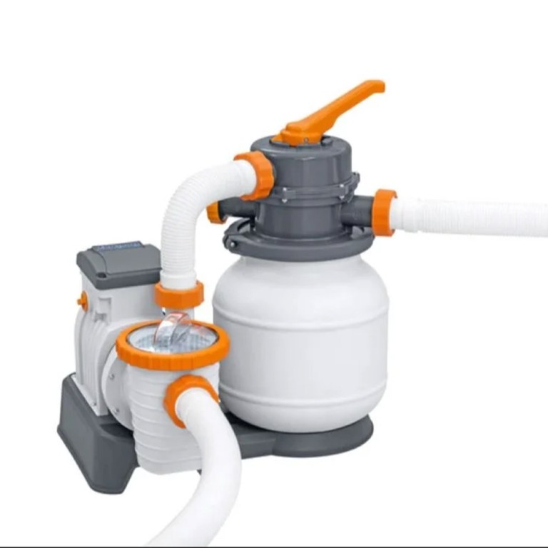 يحتوي على: حمام سباحة ومضخة بفلتر وسلم وغطاء لحوض السباحة ومفرش لحوض السباحة وقطعة إضافية للتصليح.