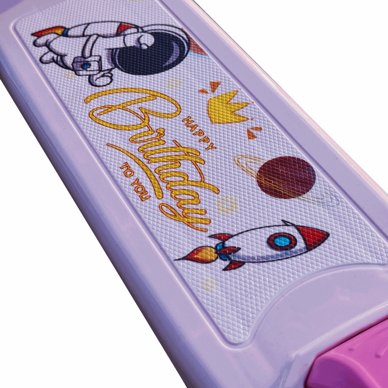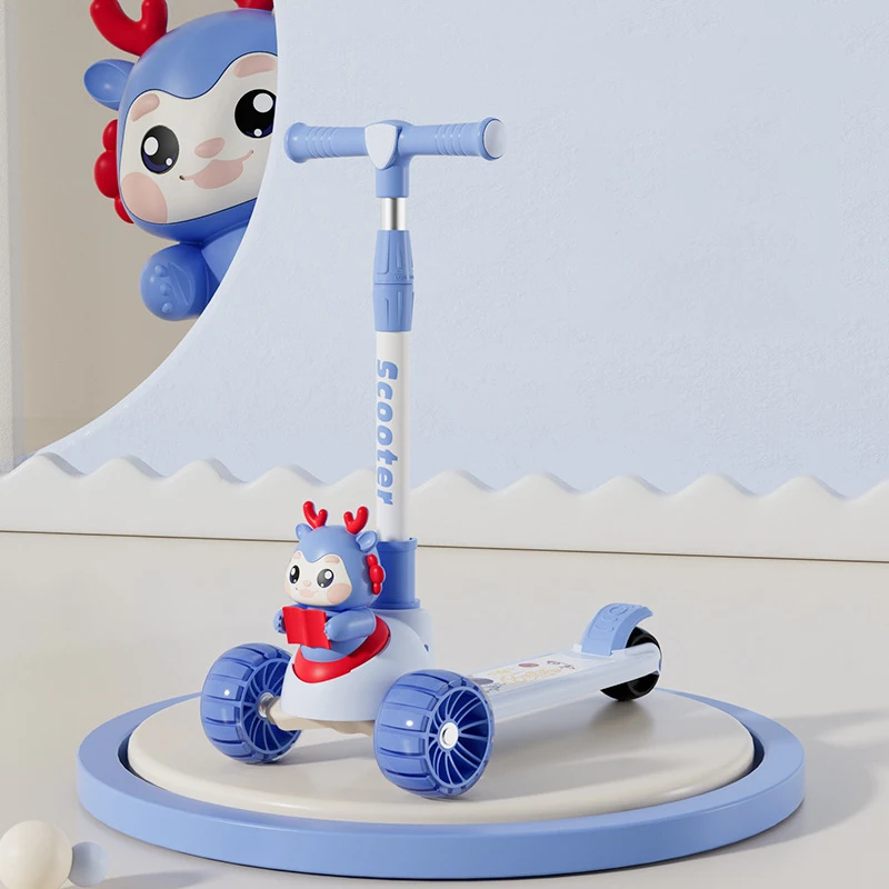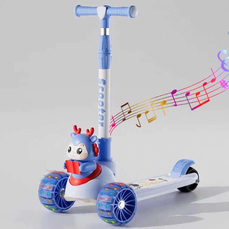 "يا هلا! شوفوا هالتحفة للصغار! سكوترنا اليديد بتصميم ولا أروع، فيه سيت عشان الراحة وموسيقى تخلي اللعب وناسة. مثالي لعيالكم من عمر سنتين لين 10 سنين. لونه أزرق كيوت و فنتك، وهدية ولا أروع لأي طفل!"
