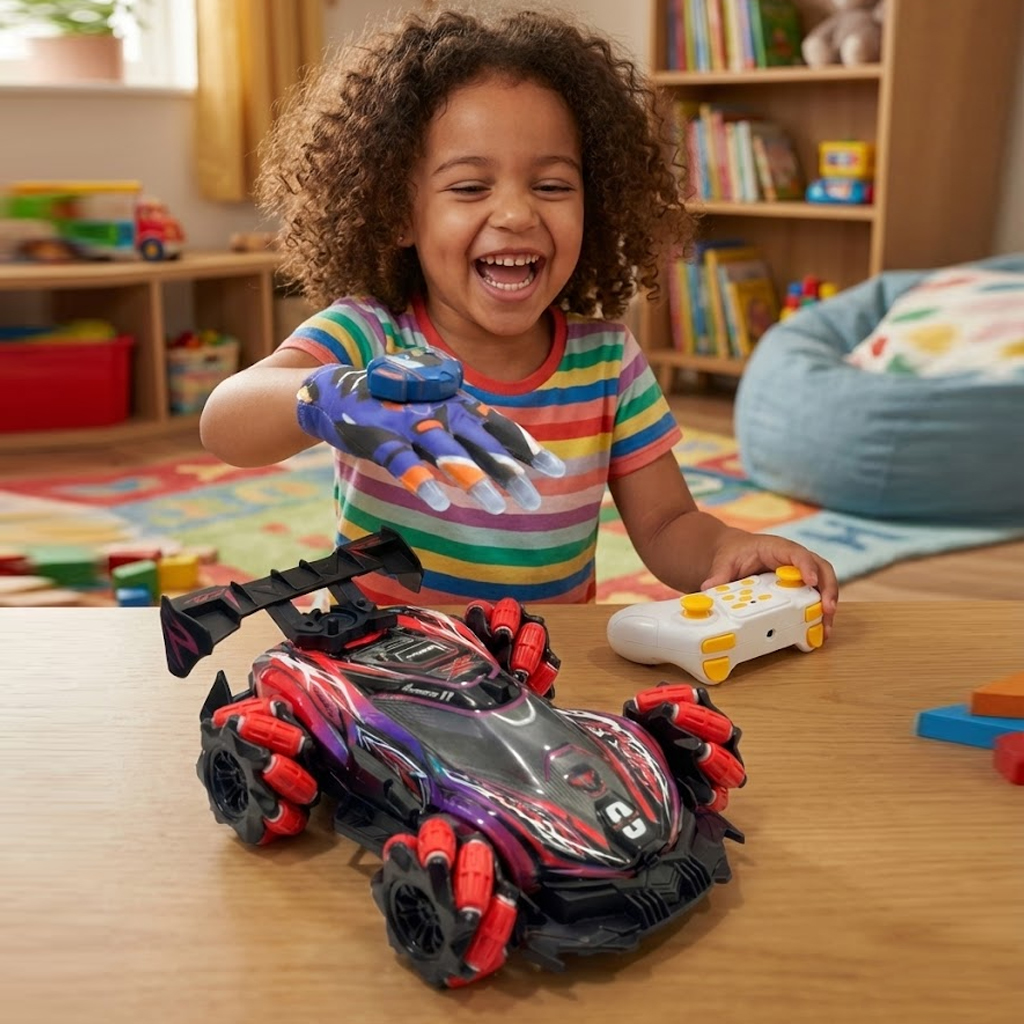 سيارة دريفت مع ريموت تحكم-تدور سيارة بجهاز التحكم عن بعد 360 درجة ، وتحتوي على أضواء وامضة وموسيقى ممتعة ، وتتحرك العجلات في جميع الاتجاهات.