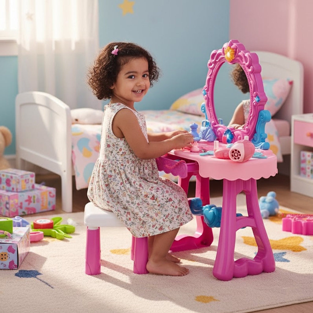 💖 تسريحة ساحرة مع إضاءة – 29 قطعة من المرح والإبداع! ✨📌 وصف المنتج:🌟 لعبة تسريحة متكاملة بتصميم مميز لتنمية خيال الطفلة وتشجيعها على الإبداع!✔️ 29 قطعة بلاستيكية آمنة – مشط، فرشاة، إكسسوارات شعر، وعصائب.✔️ إضاءة LED جذابة – تضيء عند الاستخدام (تعمل بالبطاريات).✔️ تصميم مدمج – مع مرآة صغيرة لرؤية التسريحة النهائية.✔️ مناسبة للعمر من 3 سنوات فما فوق – مواد غير سامة وخالية من الحواف الحادة.
