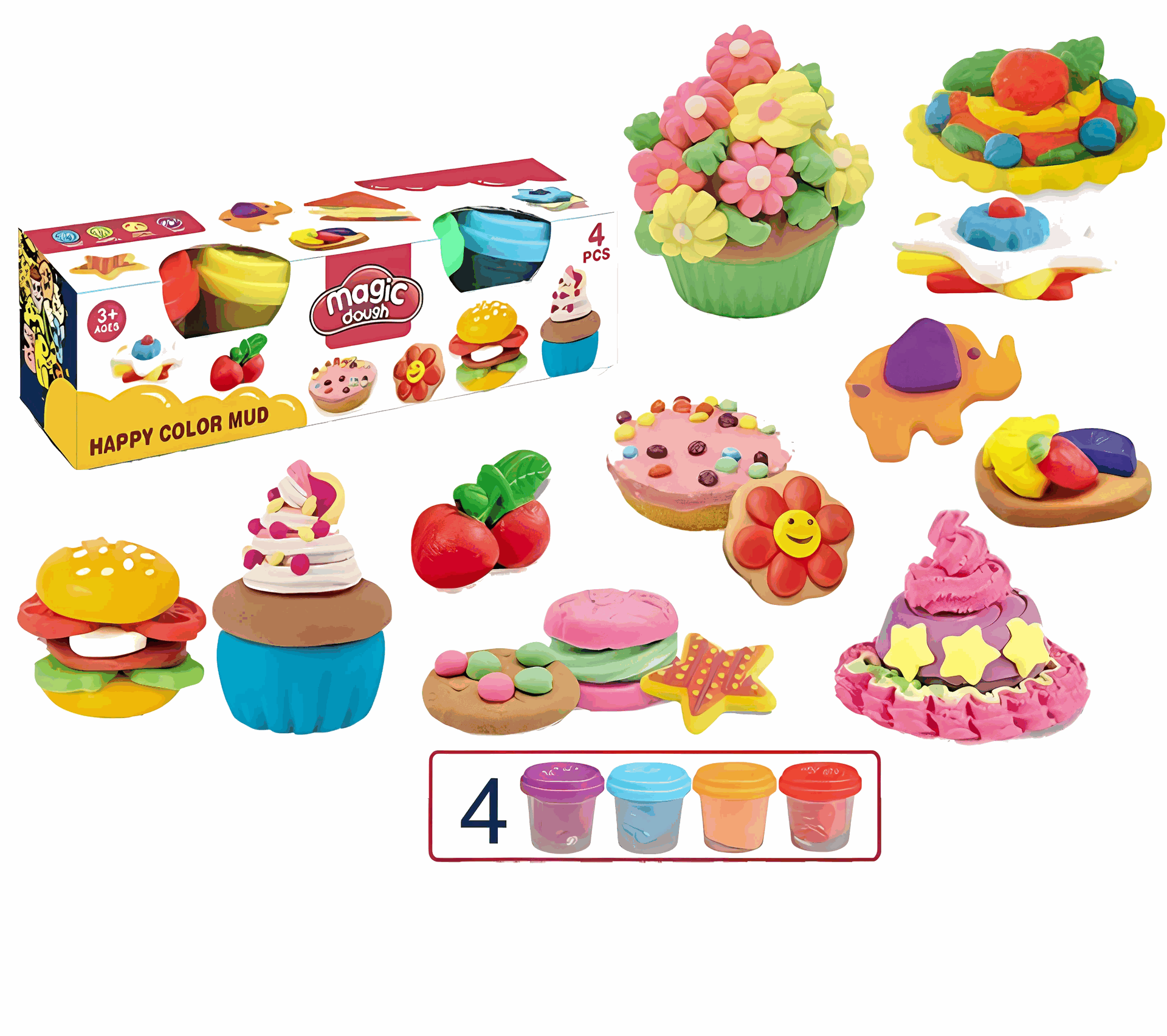 عبوة صلصال تحتوي على 4 ألوان زاهية، ناعمة وسهلة التشكيل، مثالية لتحفيز خيال الأطفال وتنمية مهاراتهم اليدوية. آمن للاستخدام وخالٍ من المواد الضارة، مناسب للأطفال من عمر 3 سنوات فما فوق.