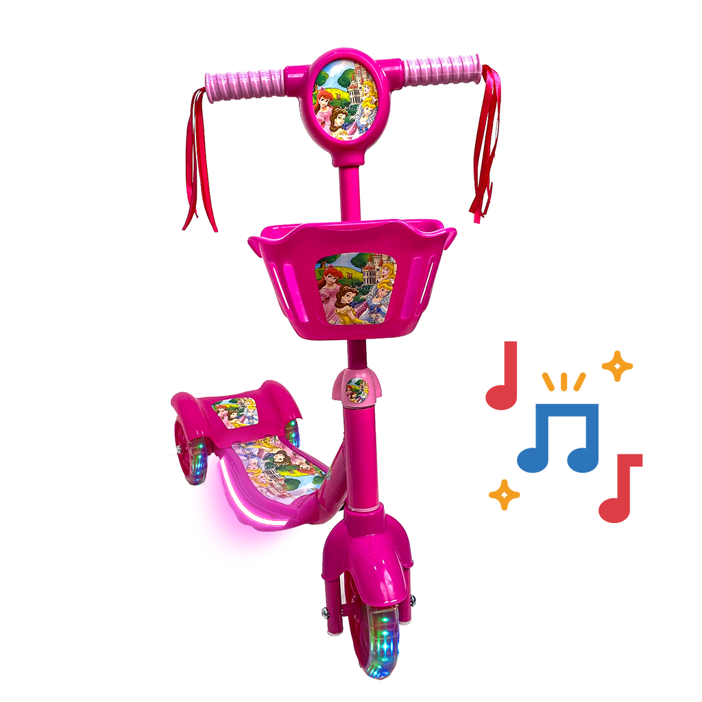 اسكوتر شخصيات ( مناسب لعمر سنه ونصف حتى عمر ثلاث سنوات ونصف ) يأتي بخمسة أشكال واللوان - اللون الازرق بشخصية ميكى ماوس - اللون الاحمر مع الازرق بشخصية سبايدر مان - اللون الوردي الفاتح بشخصيات اميرات ديزنى - اللون الوردي الداكن بشخصية مينى ماوس - اللون البنفسجى بشخصيات فروزين - يأتى مع اضاء قوية فى التايرات والجزء السفلى من الاسكوتر - سلة قوية ومميزة لحفظ الاغراض - موسيقى جميلة تضيف جوا من المرح للتجربة