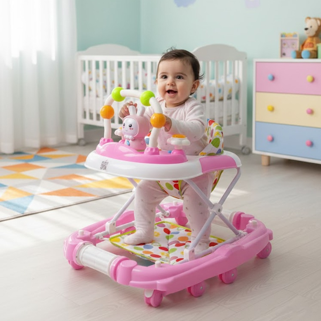مشاية أطفال برو مع ارضية مشاية قابلة للطي مع ارتفاع قابل للتعديل مقعد جيد مرتفع الظهر موسيقى، سكان لعب, اضاءة ,