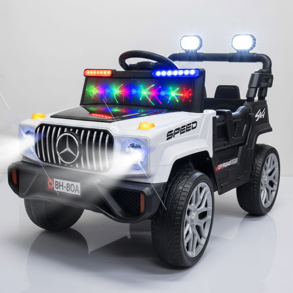 إضاءة احتفالية: تتميز بشريط إضاءة LED ملون على الزجاج الأمامي، ومصابيح علوية كاشفة، وأضواء أمامية قوية تمنحها مظهراً مبهراً.