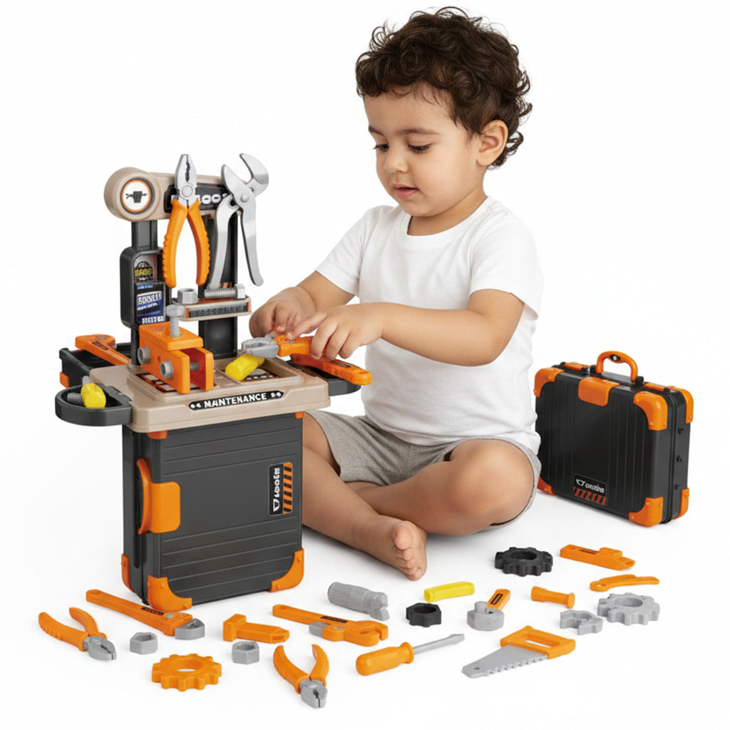 مختبر الصيانة الصغير: حقيبة أدوات احترافية 2 في 1 تتحول من حقيبة حمل أنيقة إلى طاولة عمل متكاملة، تمنح طفلك تجربة المهندس الصغير الحقيقية.