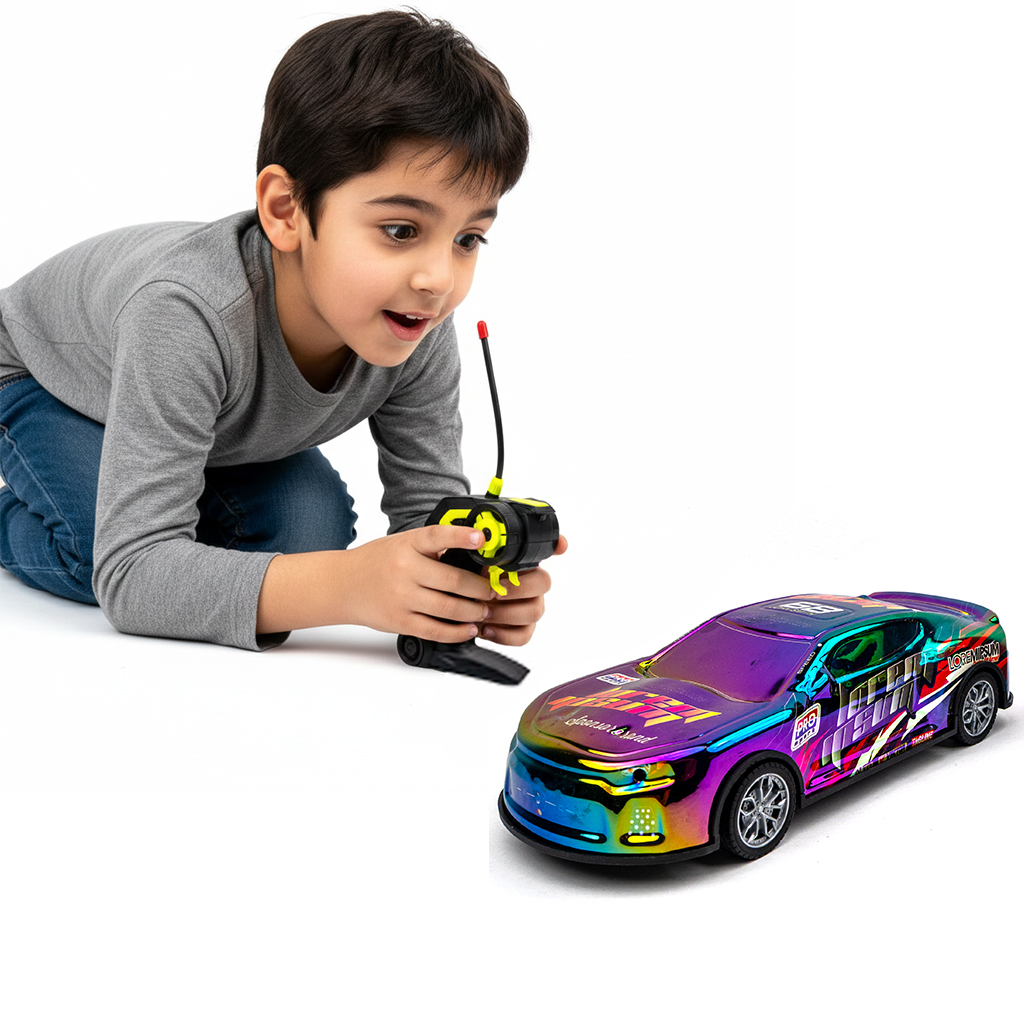أطلق العنان لمتعة طفلك مع سيارة السباق العصرية! تتميز بتصميم انسيابي مذهل وألوان "كروم" عاكسة تتغير مع الضوء، مما يمنحها مظهراً مستقبلياً جذاباً. تأتي مع جهاز تحكم لاسلكي سهل الاستخدام، مما يجعلها الهدية المثالية لتنمية مهارات التركيز والمرح لدى الأطفال. تصميم مبهر: طلاء معدني لامع بألوان متعددة. تحكم كامل: جهاز تحكم عن بعد دقيق وسريع الاستجابة. متانة عالية: مصنعة من مواد آمنة وقوية لتحمل الصدمات.