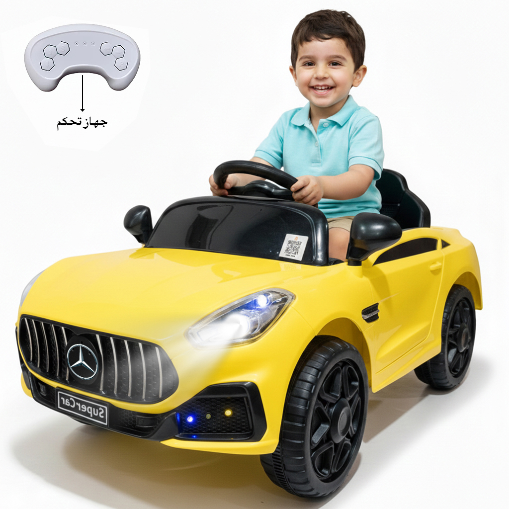 سيارة مرسيدس كهربائية للأطفال بنظام تحكم عن بعد سيارة عصرية ممتعة للأطفال، مزودة بمصابيح أمامية ساطعة وهيكل متين، تأتي بأربعة ألوان جذابة: الأبيض، الوردي، الأحمر، والأصفر. تتميز بنظام قيادة يدوي للطفل بالإضافة إلى جهاز تحكم عن بعد للأهل لضمان السلامة، مع مقعد مريح وتصميم رياضي يحاكي السيارات الحقيقية.