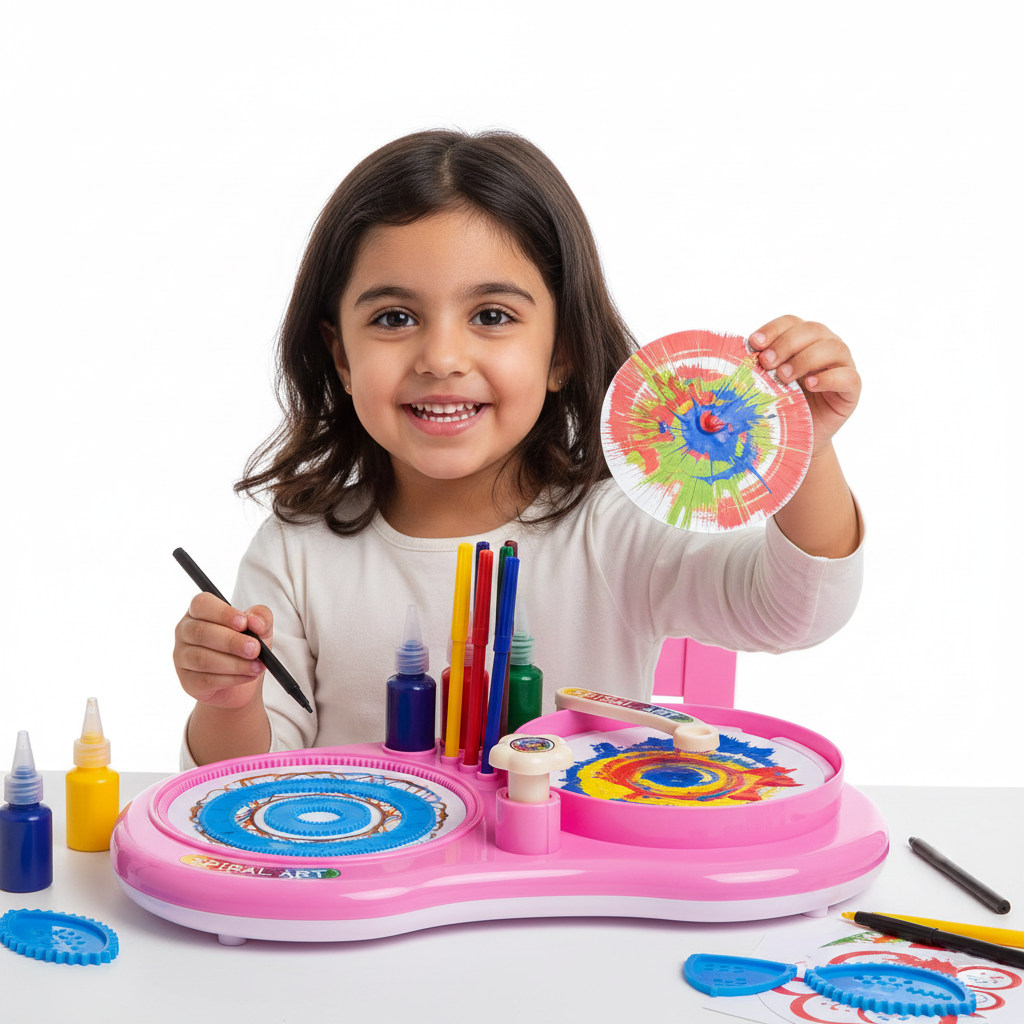 لعبة فن الأشكال اللولبية والألوان (Spiral Art)، تتيح للطفل ابتكار لوحات فنية مذهلة ودمج الألوان بطريقة إبداعية تنمي الحس الفني والتركيز لديه.