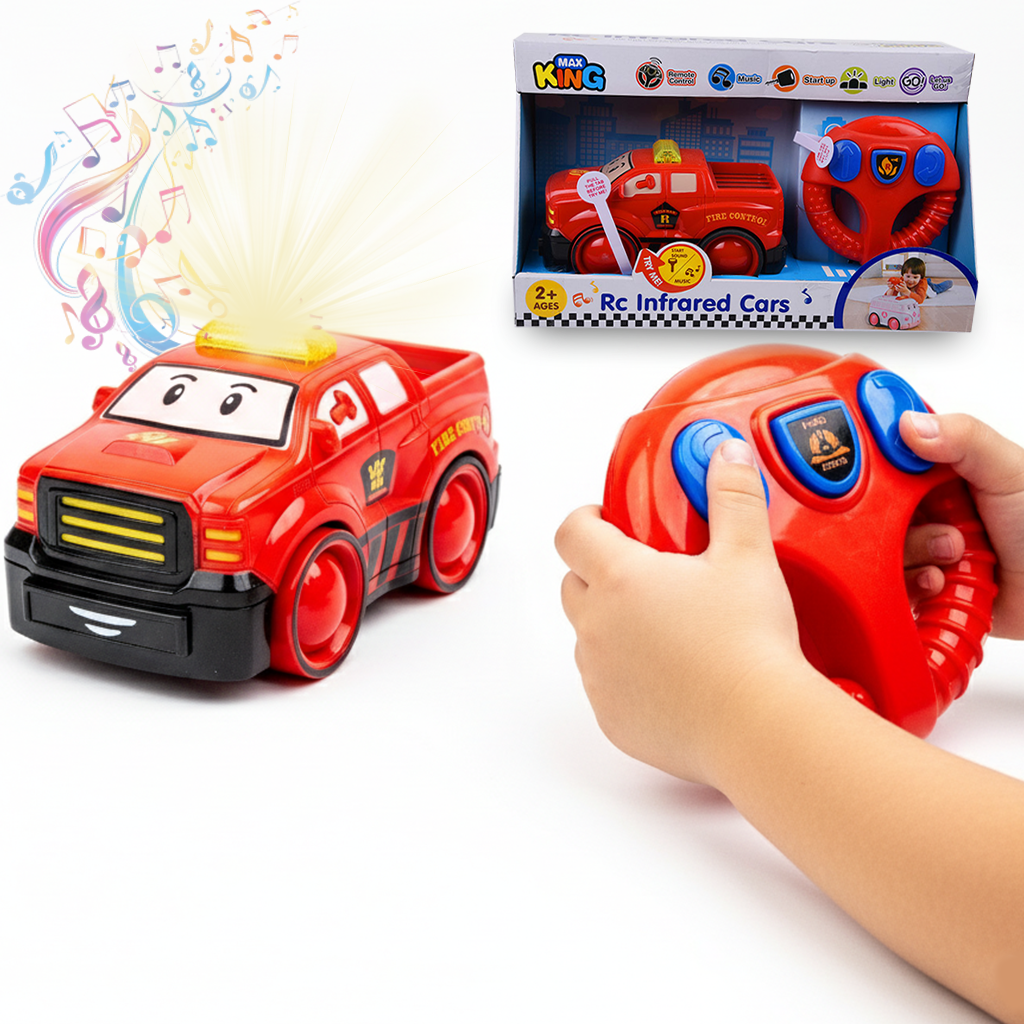 "سيارة إطفاء ذكية تعمل بالتحكم عن بعد (RC)، تتميز بمؤثرات ضوئية وصوتية ممتعة تجذب انتباه الطفل وتنمي مهارات التركيز والتآزر الحركي عنده.