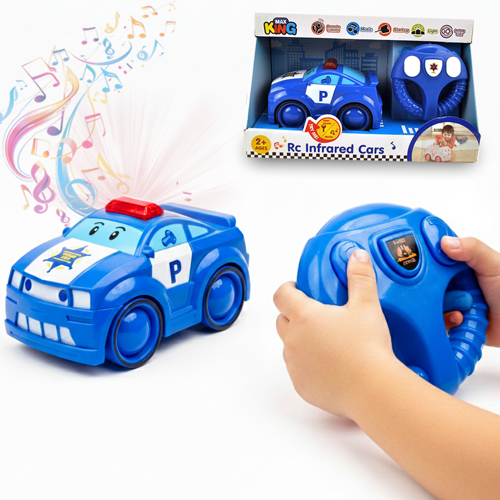 "سيارة شرطة ذكية تشتغل بالتحكم عن بعد (RC)، فيها إضاءة وأصوات ونياسة وتتحرك بكل الاتجاهات، تشجع الياهل على الحركة وتنمي عنده سرعة الاستجابة.
