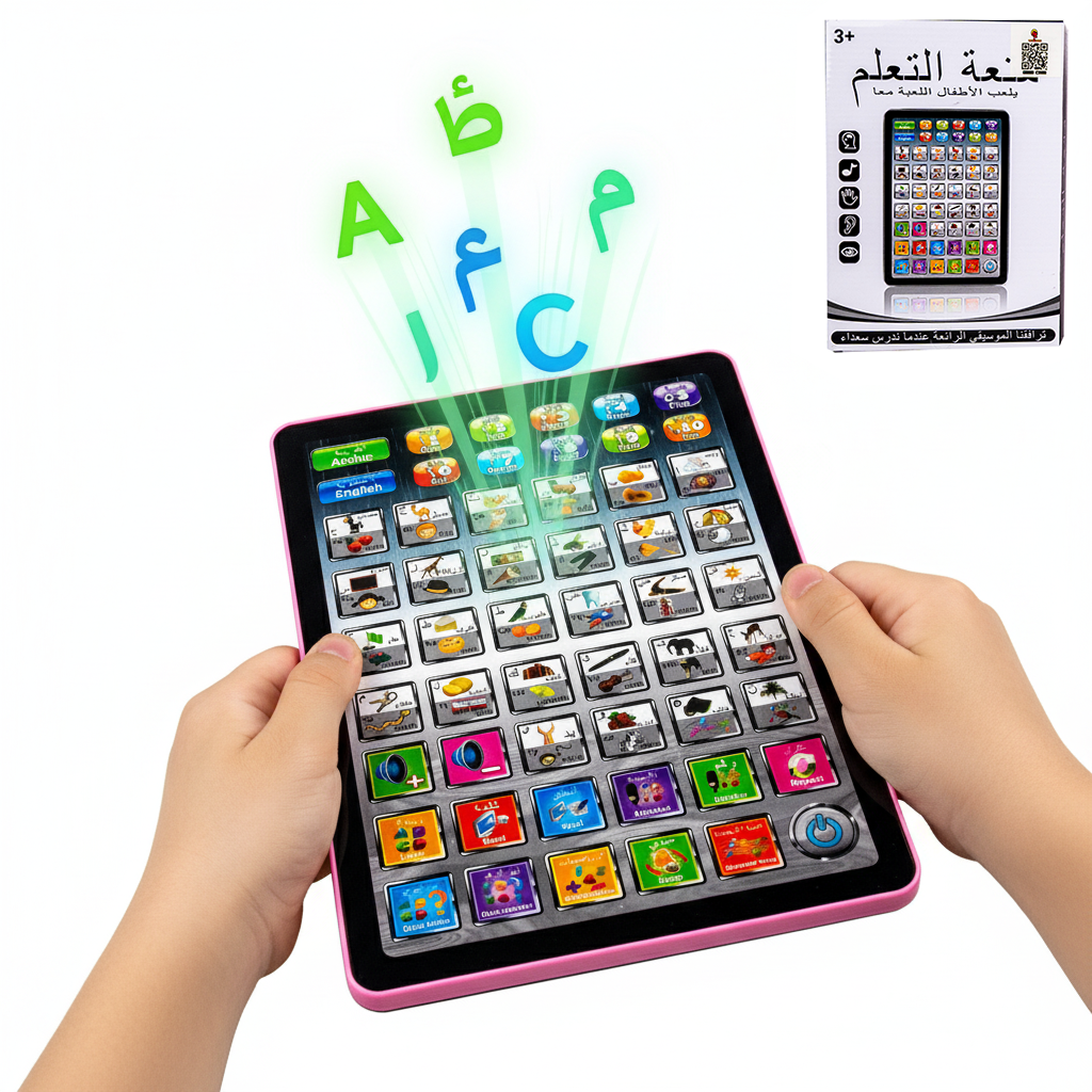 "جهاز تعليمي تفاعلي ذكي (Learn Tablet)، يساعد الطفل على تعلم الحروف والأرقام والكلمات باللغتين العربية والإنجليزية بطريقة ممتعة وسهلة من خلال الضغط والاستماع.