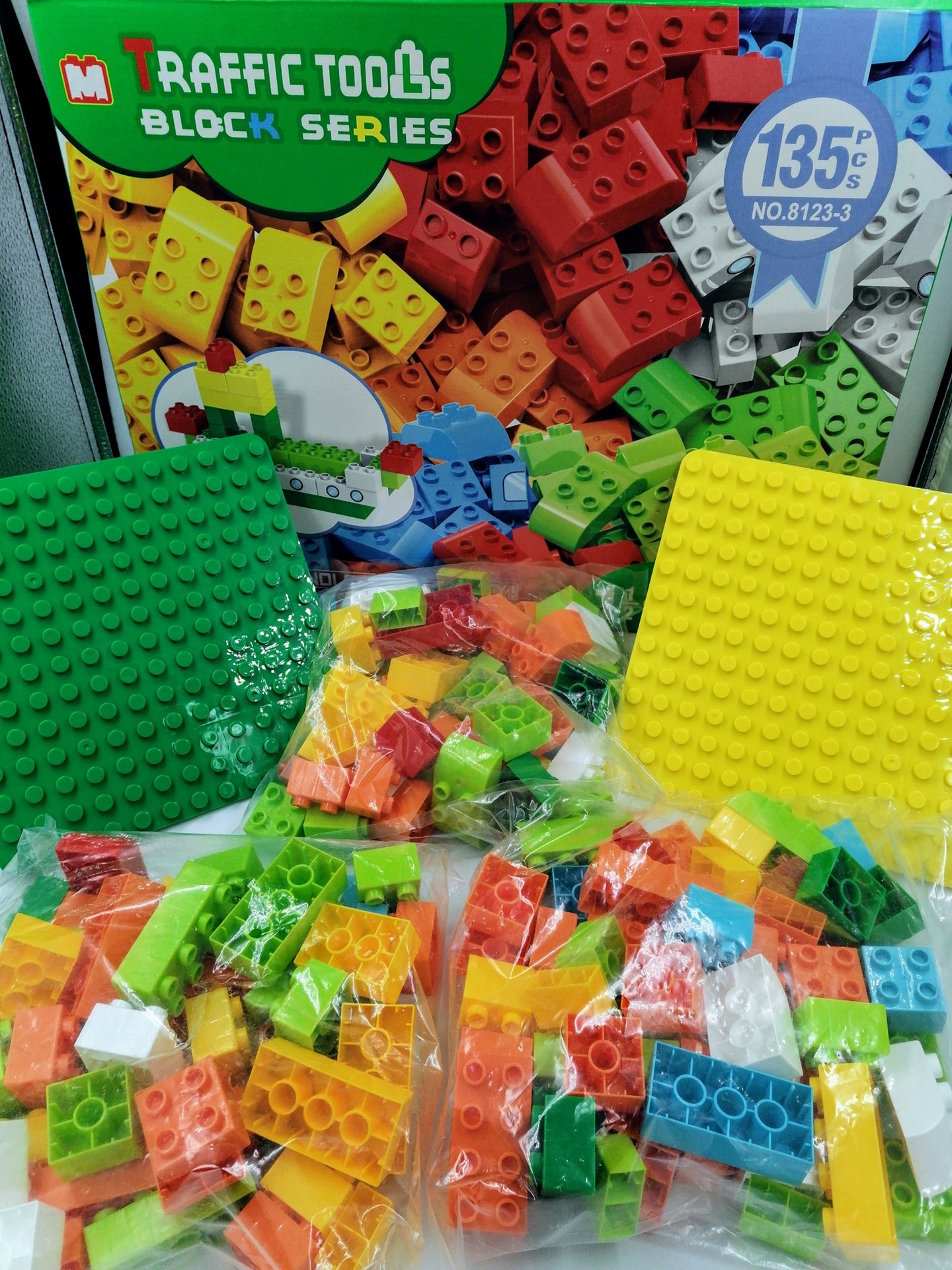 مجموعة تركيبات مع 135 قطعة الوان مختلفة و رائعة يمكن انشاء اكثر من شكلمصنوعة من البلاستيك الآمن على الاطفال