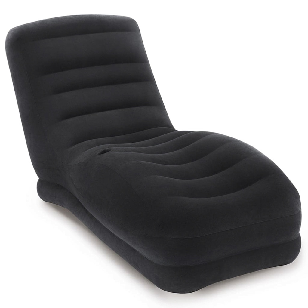 Inflatable chair Dimensions: 86 × 170 × 94 cm For internal and external use, vinyl is made of 0.3 mm and fast inflatable and shrinkage with valve 2 in 1 with a bottle holder in black. Relax in this cosy Mega Lounge, made of durable materials.