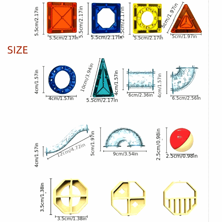 Unleash your child's imagination: 97 pieces can be easily combined into different shapes to stimulate your child's imagination and practical skills. From simple 2D shapes to 3D geometric shapes, full of fun and entertainment, magnet building toy gift for children aged 3 years and older
