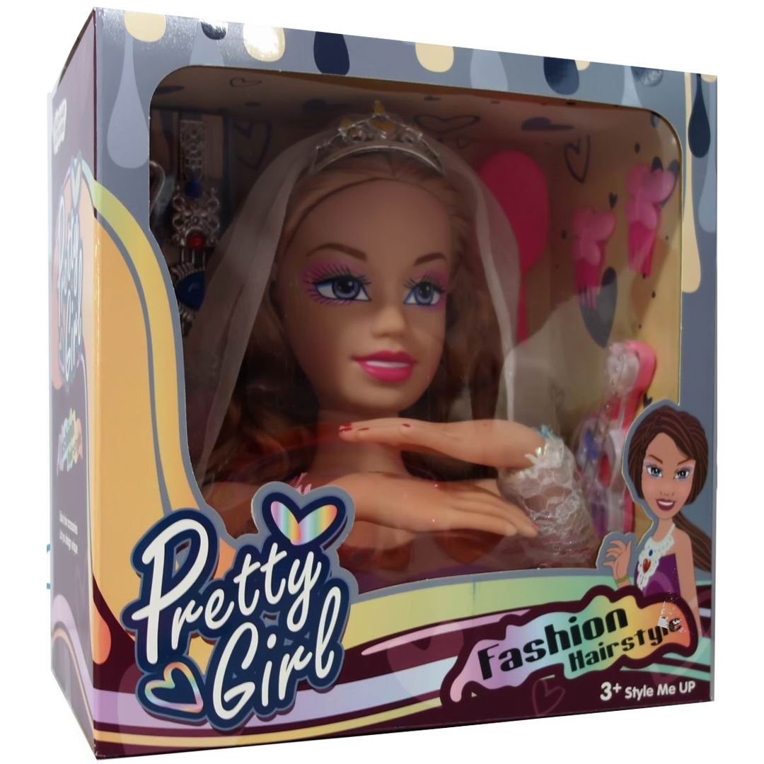 Create hairstyles and makeup with the Hairdresser Head Set Mother's Woman with Brown Hair