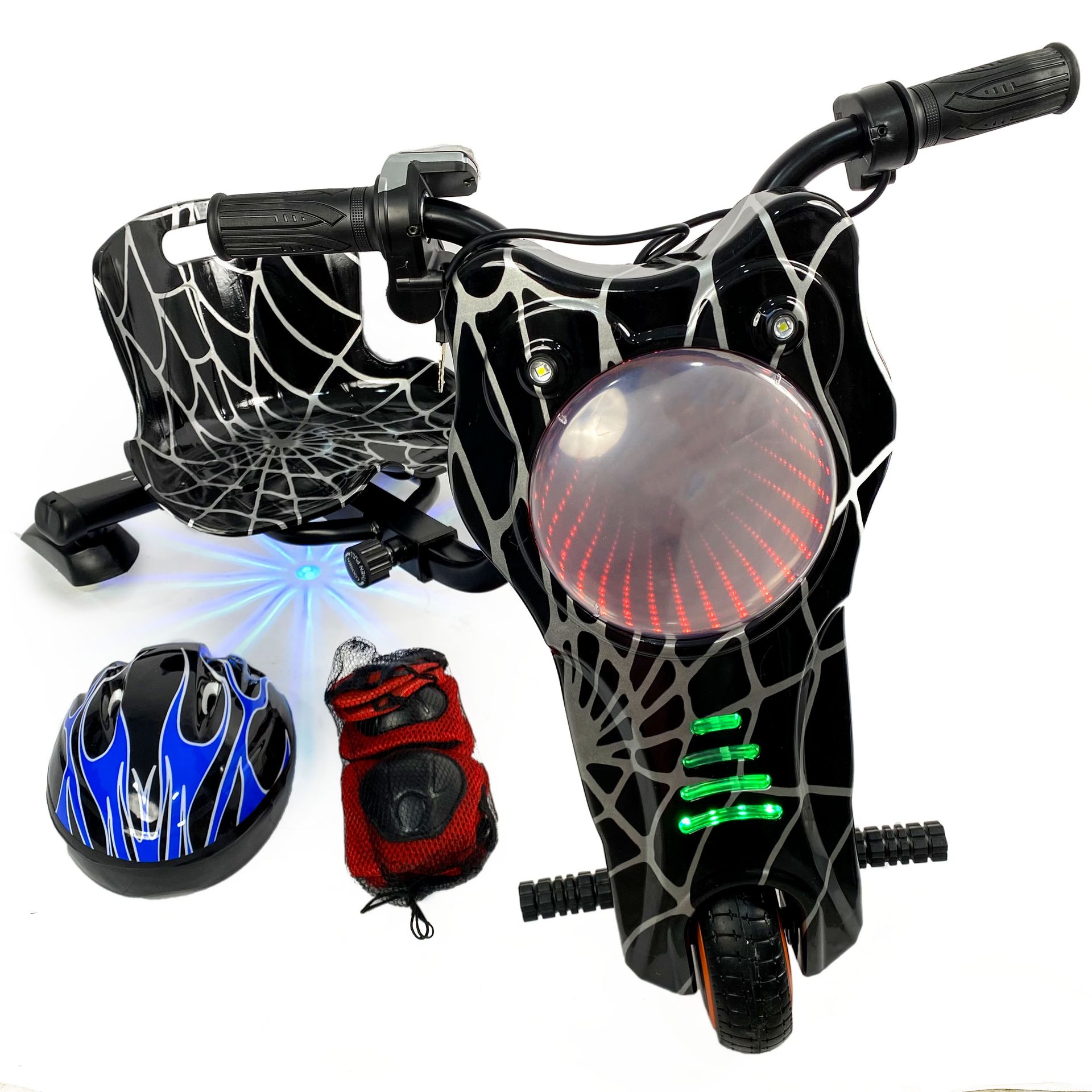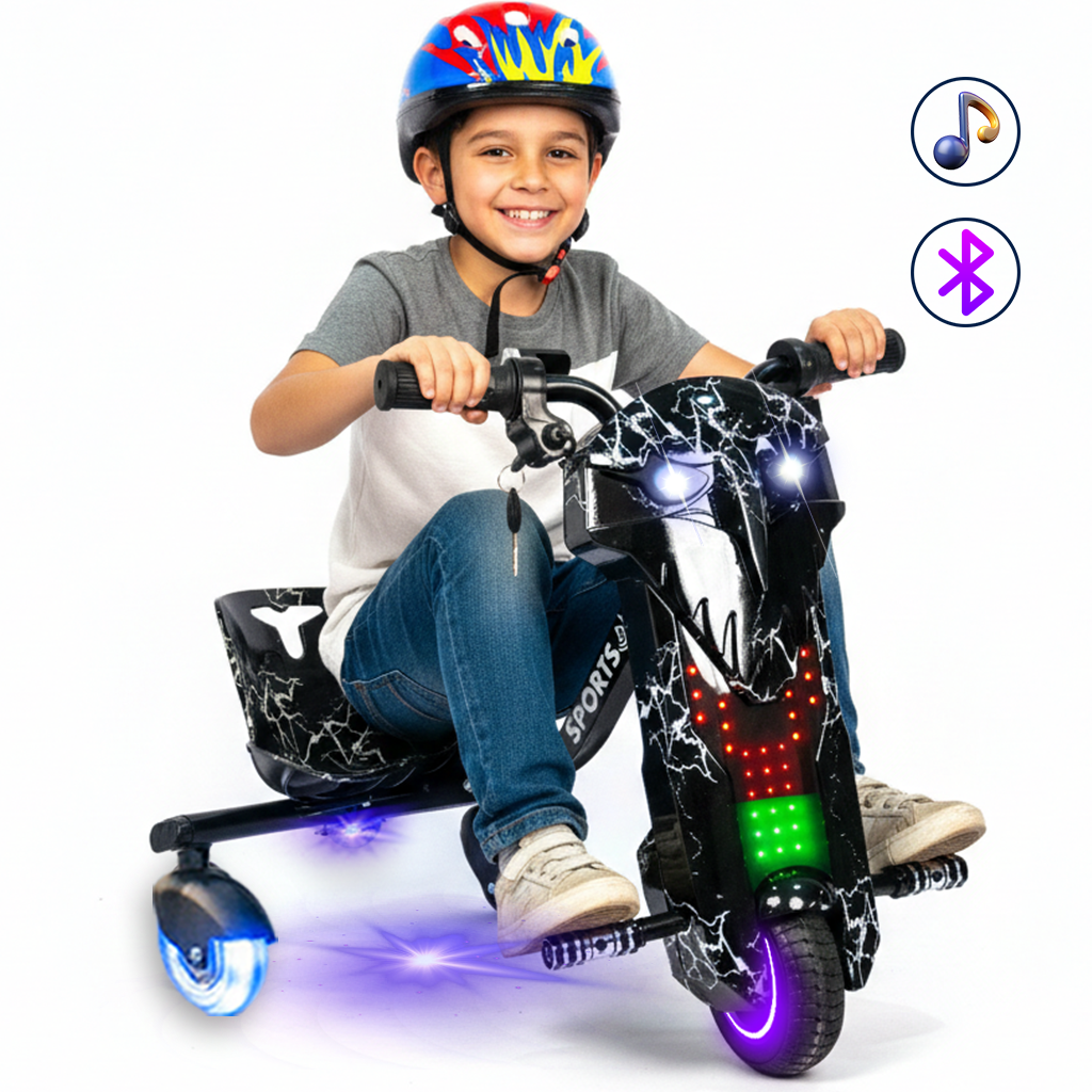 36V Drift Scooter - Available in two sizes - Large size and Medium size, equipped with Bluetooth, a helmet, and a strong brake. Fast-action scooter works by electric charging, rear lighting under the seat, strong front lighting, strong 36V lithium battery, powerful machine that withstands weight up to 100 kg, 3 different speeds that can be controlled through the speed toggle button, 2 operating keys, strong front LEDs, a screen to review the battery charge level, silent machine without sound, horn, and a seat that moves forward and shortens through the control button.