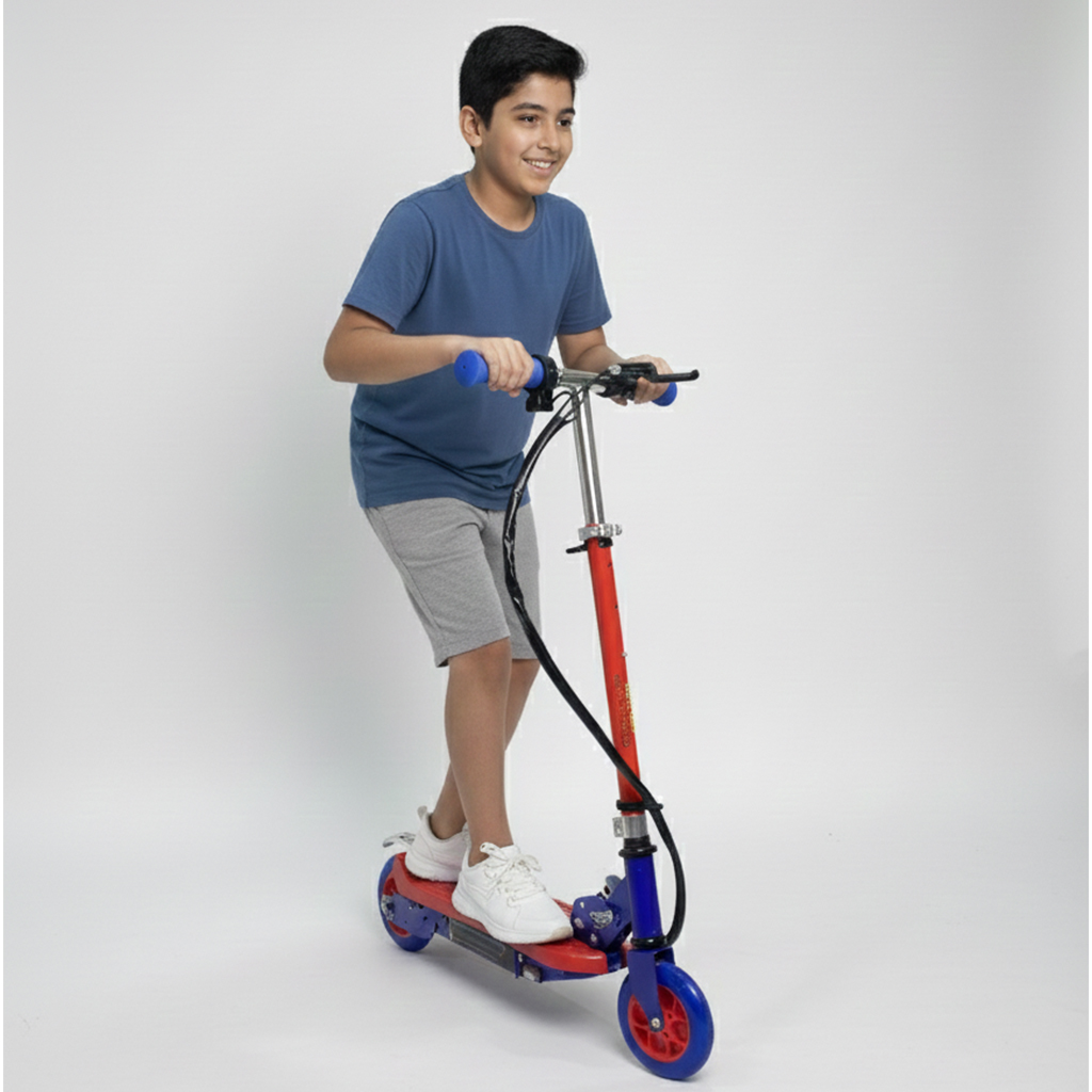 Electric Scooter – Modern Design & Vibrant Colors A modern electric scooter that combines safety and ease of use. Perfect for daily adventures and developing balance skills in children. Long-lasting Battery: Enjoy extended playtime. Fast & Powerful Charging: Ready to go in no time. Adjustable Speed Control: Set the perfect pace for safety. Durable Frame: Built to withstand heavy use. Smooth Ride: Comfortable grips and stable wheels. Easy to Control: Perfect for beginners.