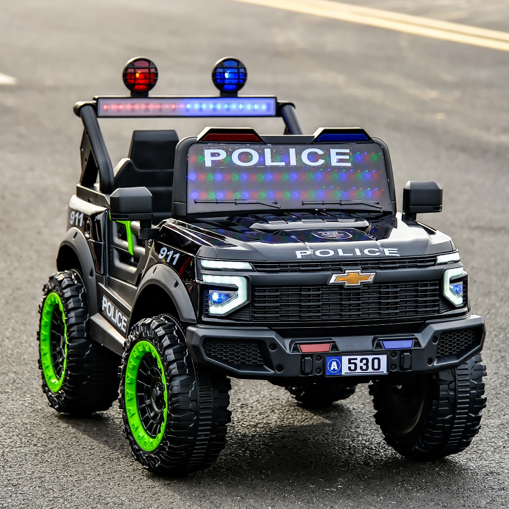 Bold Design: A rugged black body with "911" decals, bright LED headlights, and a realistic "Police" light bar.