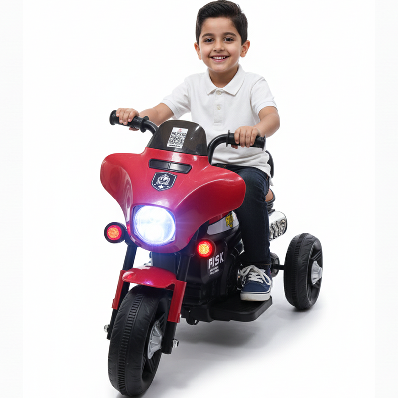 Interactive Riding Experience: Features a built-in sound system with songs, music, and realistic engine sounds for an immersive feel. Bright LED Lighting: Equipped with a powerful front headlight that provides clear visibility and a cool, modern look. Superior Stability: The three-wheel design ensures maximum balance and safety, preventing tips and falls for young riders. Stylish & Ergonomic: A beautiful sky-blue finish with realistic mechanical details and a comfortable seat designed for long play sessions.