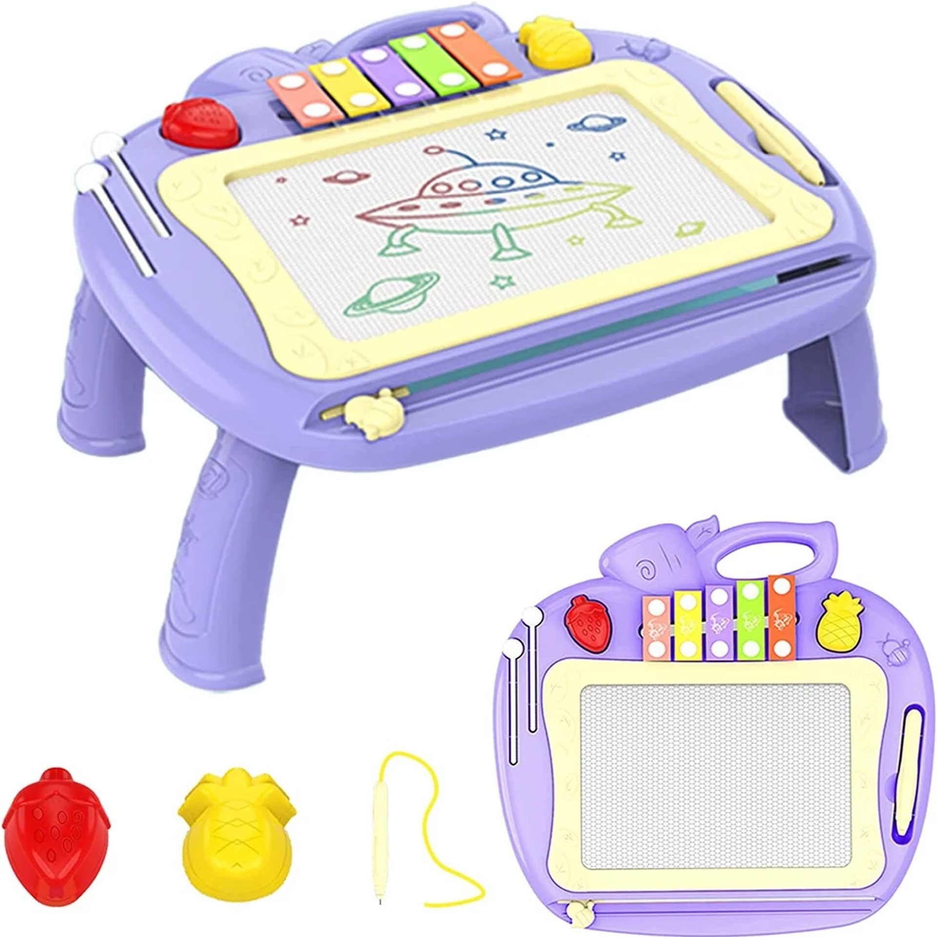 طاولة رسم 2 في 1 المبتكرة التي تجمع بين الرسم والتلوين و الموسيقي في تصميم عملي وممتع! متوفرة بلونين جذابين (وردي 💖 وبنفسجي 💜) لتناسب كل الأذواق.