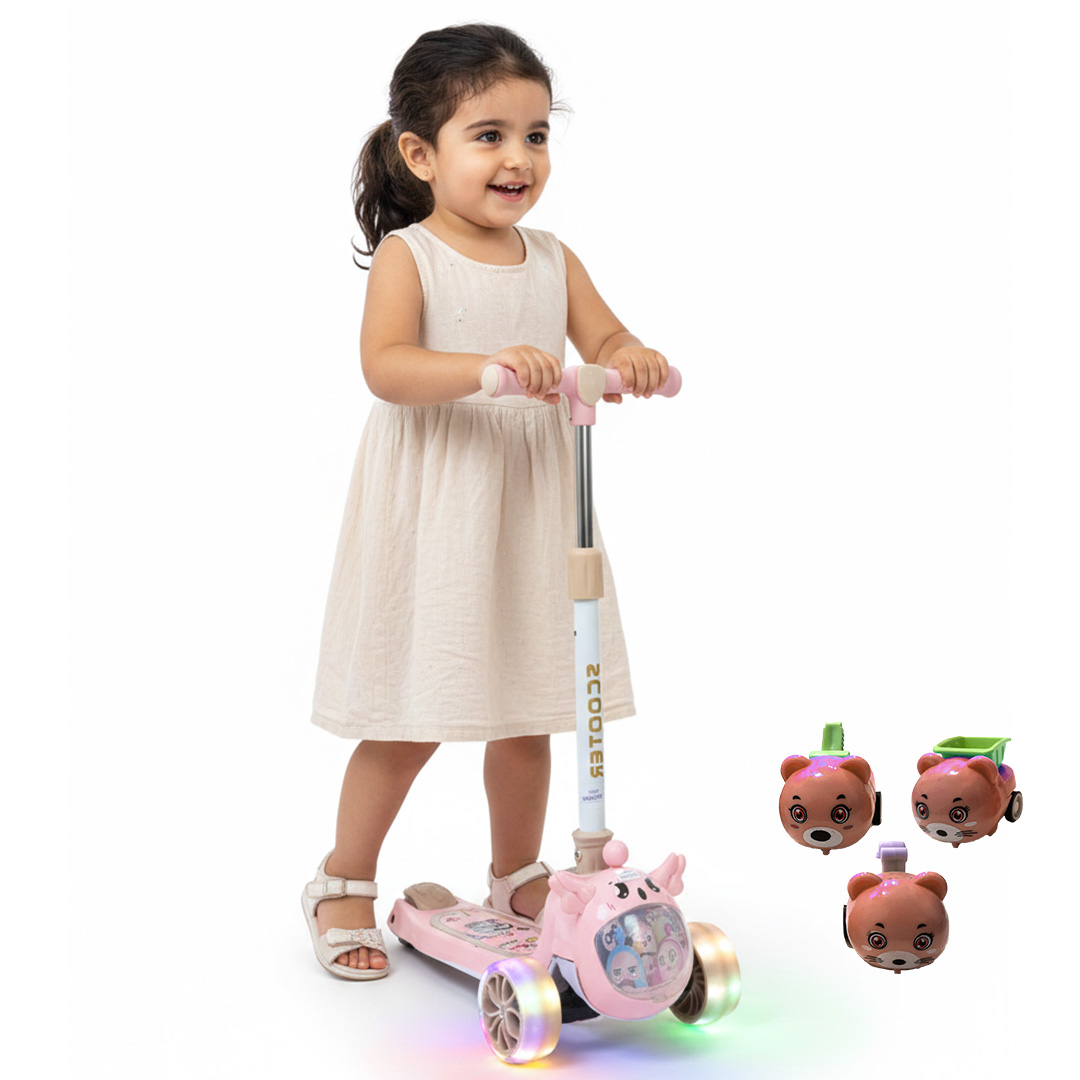 ✨ سكوتر الطفل بتصميم مذهل! ✨سكوتر الأطفال الجديد متوفر الآن باللونين الأزرق والوردي الرائع 💙 إضاءة مبهرة: يجذب الأنظار موسيقي صوت مميز - مع لعب امامي 3 سيارات