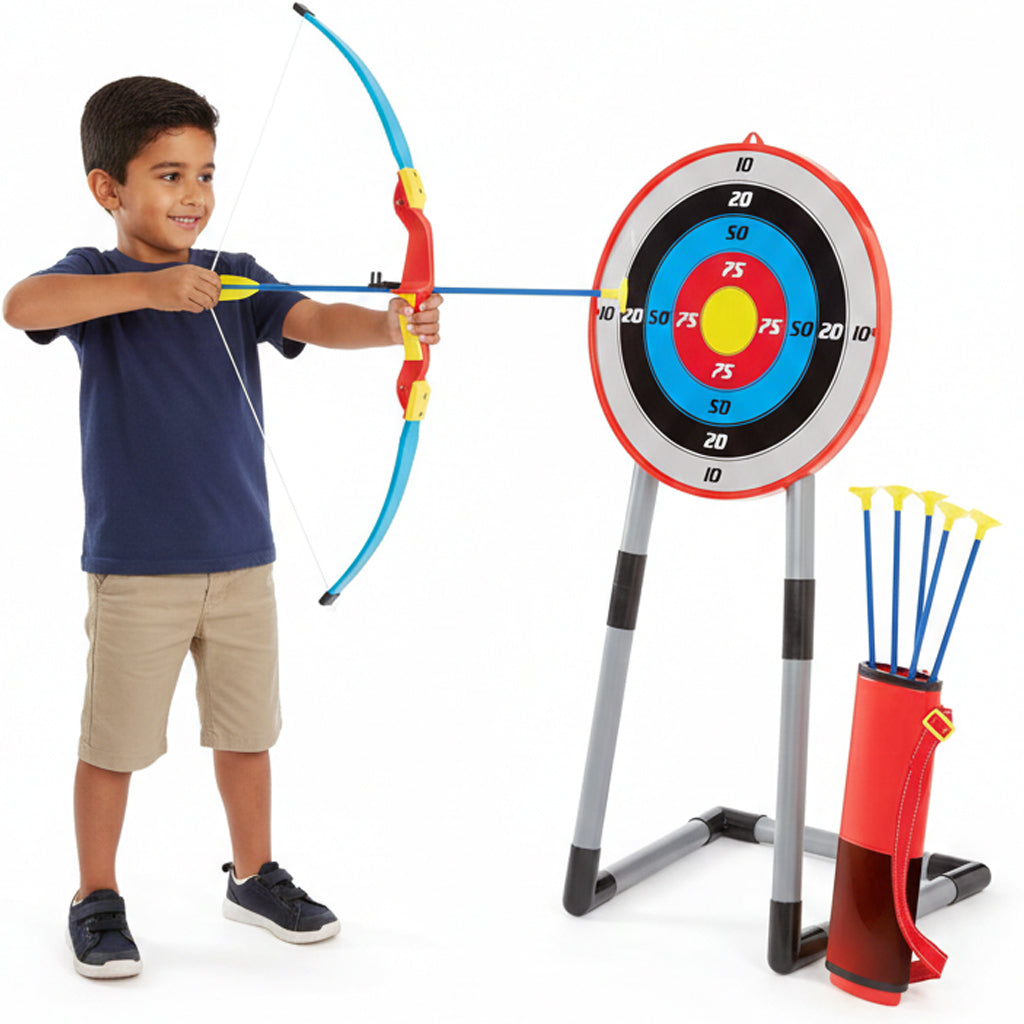تحدي الرماية الممتع: طقم قوس وسهام مصمم خصيصاً للأبطال الصغار، يجمع بين الحماس والأمان لتجربة مغامرة رمي السهام الحقيقية في البيت أو الحديقة.