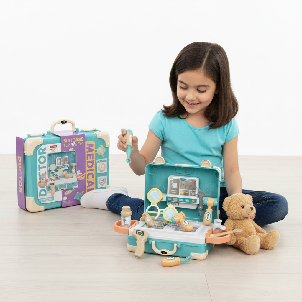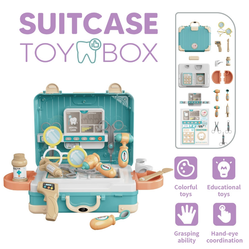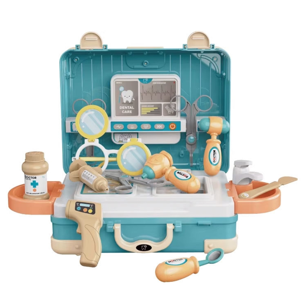 شنطة دكتور أسنان متكاملة، تعلم الطفل الاهتمام بنظافة الأسنان وتكسر حاجز الخوف من العيادة بطريقة تعليمية ممتعة. تحتوي على: شنطة تخزين، نظارات، ميزان حرارة، حقنة، مقص، أدوات فحص الأسنان، وعلبة دواء. اللعبة تنمي مهارات الطفل اليدوية، والتنسيق بين العين واليد، وتعتبر هدية مثالية تجمع بين اللعب والتعليم.