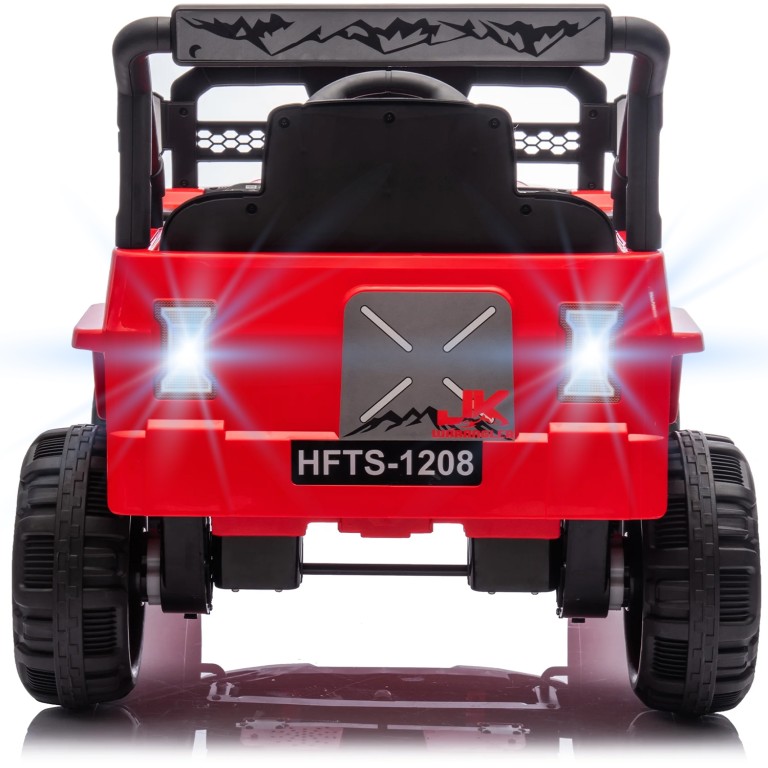 "Hello there! Get your kids this red beast! Our new 'Robbicon' style ride-on Jeep boasts a luxurious design with powerful LED lights, making adventures exciting day and night. It's perfect for your little ones to play as explorers and drive this unstoppable machine! Super stylish and unique, it makes a fantastic gift for any child who loves Jeeps and adventures!"