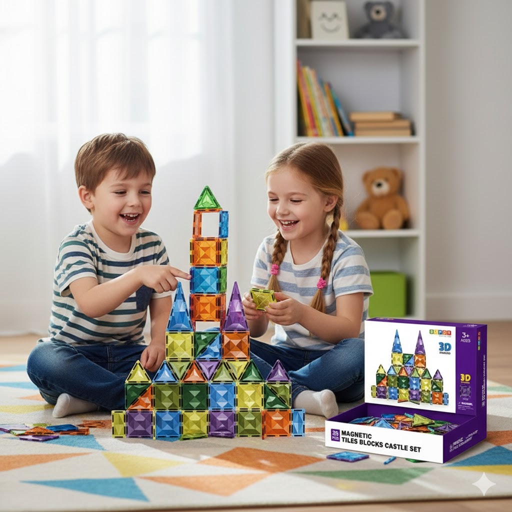 Description of 3D Magnetic Building Blocks - 35 Pieces 35-piece magnetic building block set Enables easy construction of 3D objects Magnetic pieces connect automatically with the power of magnets Develops children's visual thinking and creativity Suitable for ages 3 to 8 Safe and easy to use